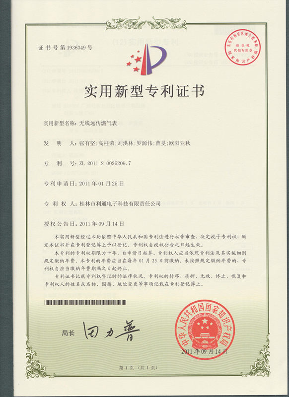 专利-无线远传燃气表