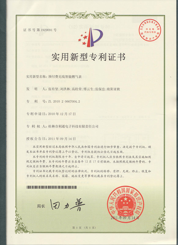 专利-预付费无线智能燃气表